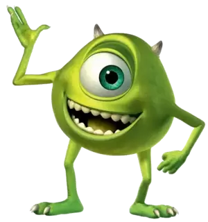 Good morning everyone. I have a little picture for you. See if anyone knows who this guy is. Is this movie too old? Anyone know what movie he is from? Yes, Monsters Inc. This is Mike Wazowski, one of the monsters in Monsters Inc. Does he look a little strange? Why does he look a little strange? What is his body? Why does he look strange? He has one eye. He has a green tongue. He has green teeth. He’s kind of funny looking.